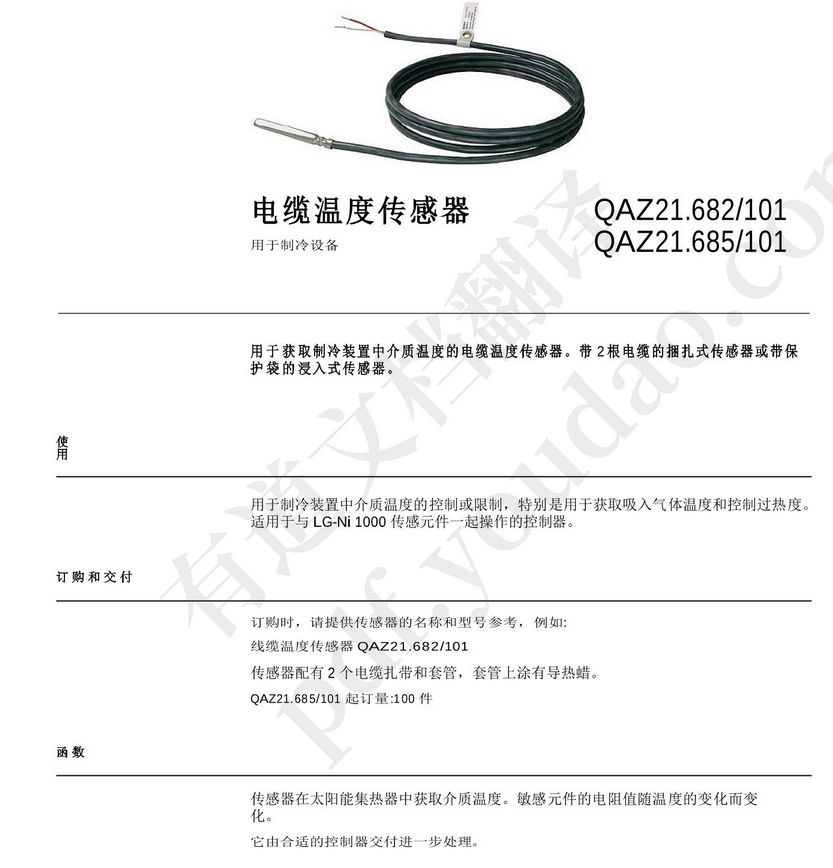 QAZ21西門子纜式溫度傳感器浸入式傳感器