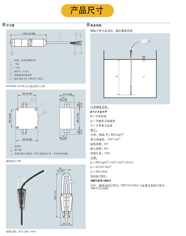 7MF1570/7MF1572西門子投入式液位計(jì)壓力變送傳感器測水位