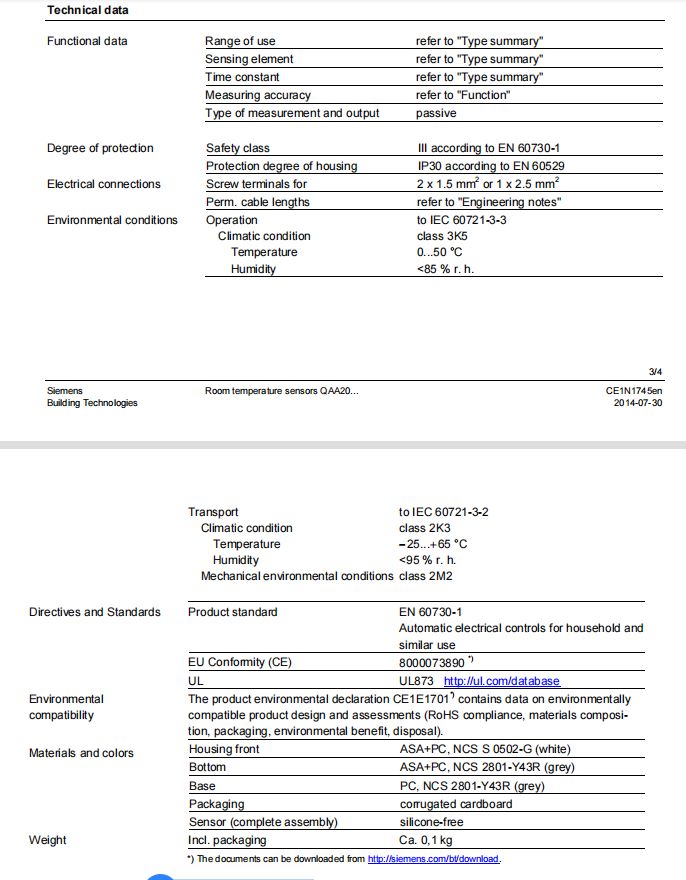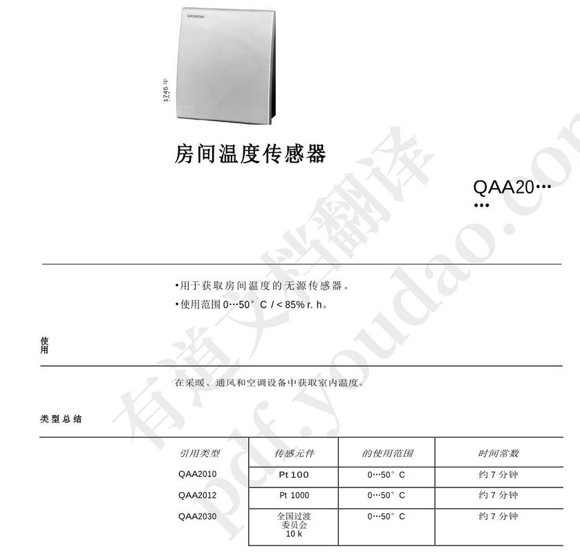 QAA2012房間溫度傳感器西門子室內(nèi)傳感器原裝進口