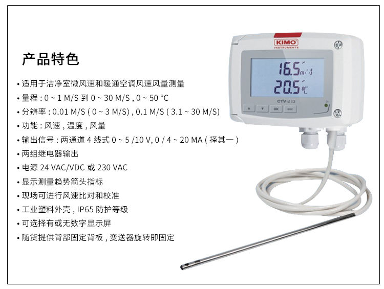 CTV210凱茂KIMO風(fēng)速風(fēng)量變送器熱線式多功能CTV210BNS法國(guó)原裝