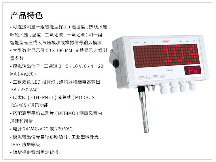 法國凱茂KIMO傳感器CA310-B/H溫濕度風量氣體多功能變送器