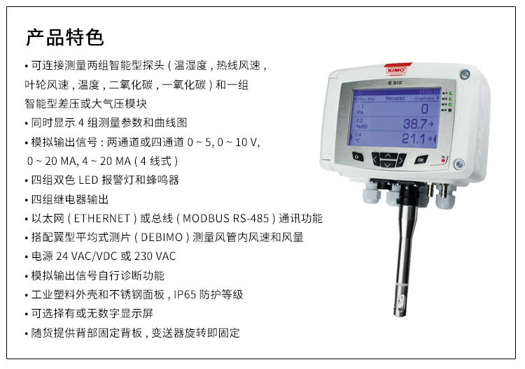法國凱茂KIMO傳感器CA310-B/H溫濕度風量氣體多功能變送器