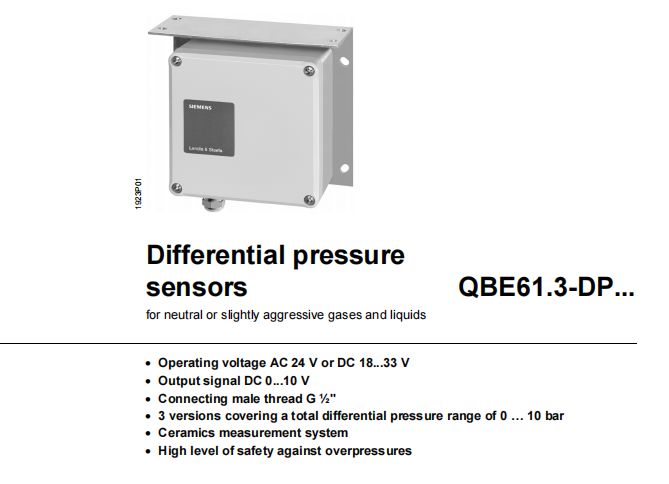 QBE61.3水流壓差傳感器西門子水管壓力傳感器