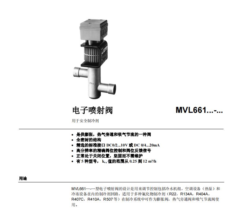 安全制冷劑閥MVL661西門子電子噴射閥德國SIEMENS