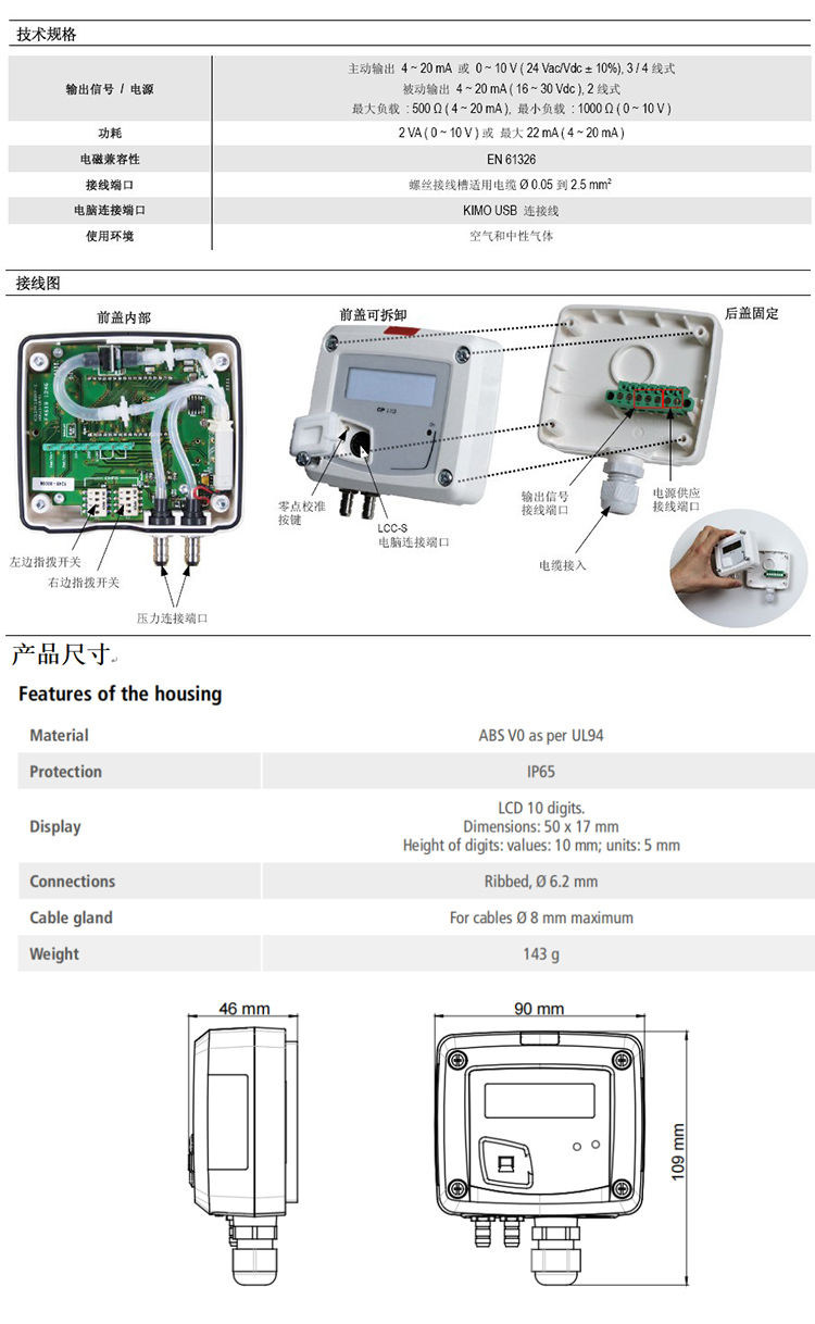 CP112/113/114/110-PN法國(guó)KIMO凱茂微差壓變送器微壓差傳感器