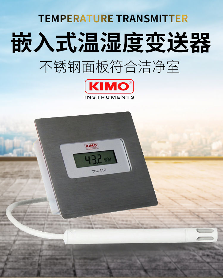 THE110法國(guó)KIMO凱茂嵌入式溫濕度變送器潔凈室4~20ma不銹鋼面板