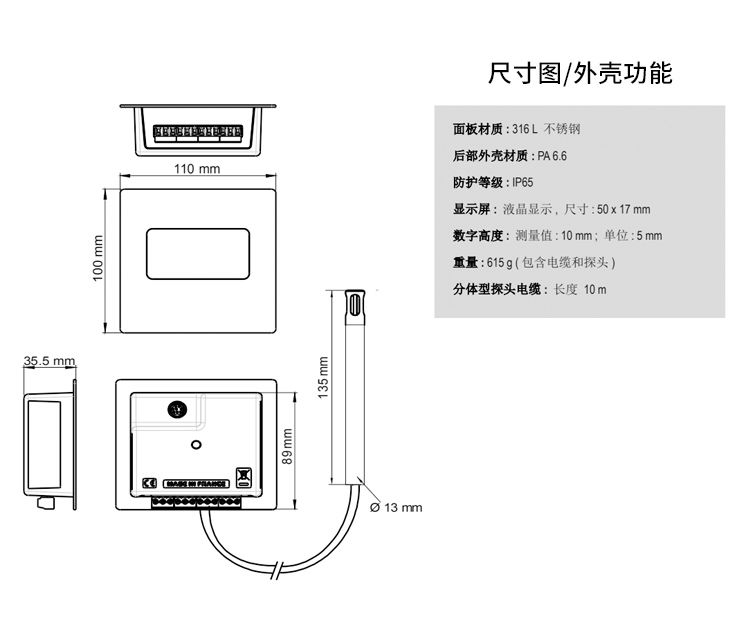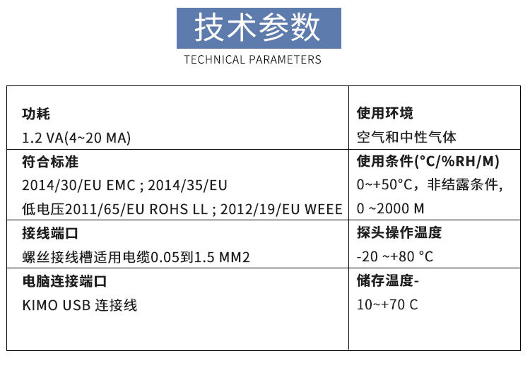 TM110法國(guó)KIMO凱茂溫度傳感器適用室內(nèi)/風(fēng)管分體式環(huán)境/帶顯示